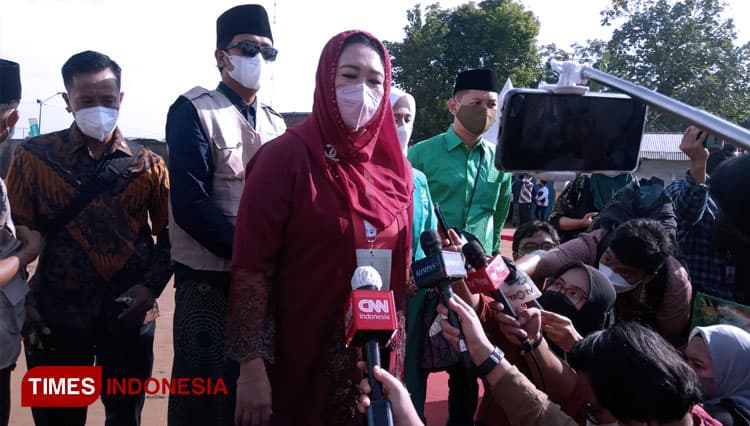 TIMES Buton/Putri Abdurrahman Wahid (Gus Dur) Yeny Wahid saat diwawancarai oleh awak media. (FOTO: Moh Ramli/TIMES Indonesia)