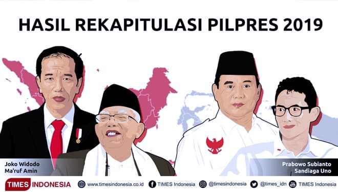JAKARTARekapitulasi di KPU RI sudah final. Pilpres 2019 resmi dimenangkan oleh pasangan Capres-Cawapres nomor urut 01, duet Jokowi-KH Ma’ruf Amin. Pasangan No urut 01 ini, sukses meraih 55,50 persen dan duet Prabowo-Sandi meraih 44,50 persen.